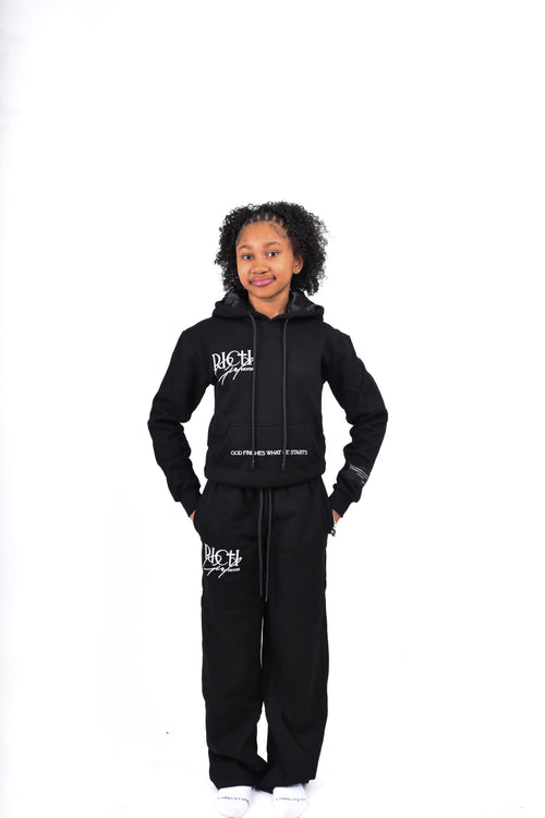 • Rich Girl Favor logo displayed on right chest and right pocket, symbolizing walking in favor and abundance in every area of life